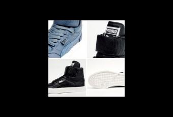 Puma nous présente ces Puma Sky Hi+ en cuir avec leur languette et sangle oversizes. Le modèle est décliné en bleu et noir contrasté par une semelle blanche. Les images dans la suite!