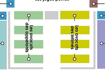 La large porte au fond de la salle d’audience principale, derrière le banc des neuf juges, s’ouvre. Un huissier crie « la Cour ! » L’assistance se lève alors que les juges grimpent quelques marches avant de s’asseoir. Le public se rassied.