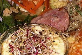 Donc a été bruncher chez Supernature. Pour résumer le concept (cré-cré original) : l’établissement est tenu par une ancienne hôtesse de l’air qui propose des plats simples et bio. Deux possibilités pour le brunch, une assiette détox et une autre « mixte ». J’ai pris la deuxième (me détoxifier, moi ? Tu m'as bien vue ? Y'aurait trop de boulot) :