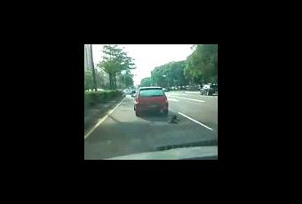 Un homme conduisait dans les rues d'Hsinchu (Taïwan) avec un chien accroché au pare-chocs arrière de sa voiture. Le pauvre animal était trainé sur le sol. L'homme qui filmait a essayé d'avertir le conducteur en klaxonnant.