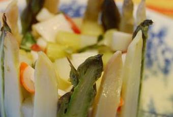 Une entrée légère, où se mèlent les saveurs d'asperge, de surimi et de basilic... un bon moment...