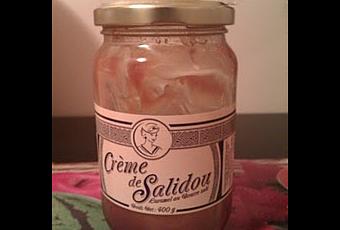 - Un peu avant que le chocolat soit complètement fondu, ajouter la crème de Salidou et mélanger pour lisser.