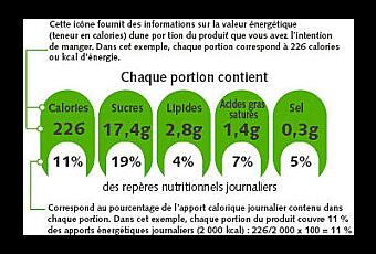 Elles vous renseignent sur la quantité de calories, de sucres, de graisses, d'acides gras saturés et de sel par portion et par rapport aux apports quotidiens conseillés. Elles ont généralement visibles, compréhensibles de tout un chacun et constituent un outil d'information très utile.