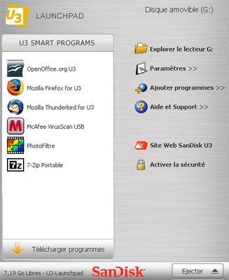 Des applications gratuites comme OpenOffice (traitement de texte, tableur...), Firefox (navigateur Internet) peuvent également être ajoutées sur les clés USB U3 et apparaître dans un très pratique menu à l'insertion de la clé:
