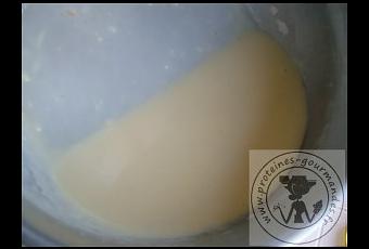 Dans une casserole, mettre le lait et cube à feux doux, faire fondre le cube puis ajouter la maizena. Ne pas cesser de remuer.