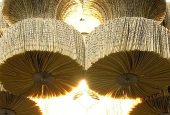 Fondatrice du studio britannique Lula Dot, Lucy Norman est à l’origine d’une initiative intéressante. Chaque semaine des tonnes de livres sortent des imprimeries londoniennes pour finalement prendre le chemin de la décharge peu après. Pour donner une nouvelle vie aux livres, Lucy Norman a eu l’idée de les recycler en lustres. Son travail consiste à plier les pages en deux pour les disposer de façon circulaire autour d’un éclairage au plafond. A l’instar des sculptures en papier recyclé de Mia Liu, le résultat de son travail vaut le coup d’oeil.