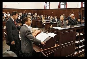 Dominique Strauss-Kahn au tribunal, face aux adjoints du procureur. Photo: REUTERS.Les avocats de DSK vont plaider le chantage à des fins financières de la part de la femme de chambre, selon l'éditorialiste politique de BFM-TV Olivier Mazerolle.