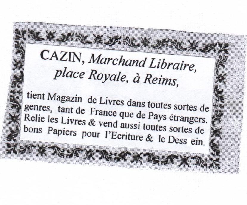 Etiquette du libraire Cazin, à Reims