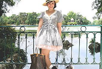 Canotier : André, Robe : Paul & Joe sister, Jupon : Manoush, Chaussures : ? (je ne me souviens plus et pas de nom dessus :-/), Cabas : Louis Vuitton.