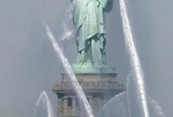 B) Arroser les alentours de la statue pour contrer un incendie de forêt qui menace le symbole de l’Amérique?