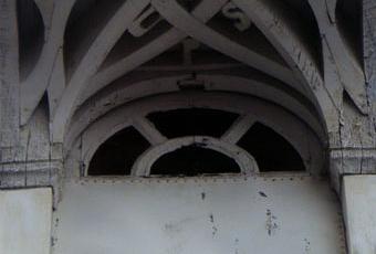 Voici une capucine située en centre-ville, dont les côtés sont couverts de jolies ardoises découpées et bicolores. Entre les liens de la charpente ont été insérées les lettres U P S F, qui sont propres aux compagnons passants charpentiers Soubises qui ont participé à une réception de Mère.