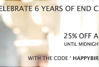 La boutique britannique End Clothing célèbre ce weekend son 6ème anniversaire. Pour marquer l’évènement, une réduction de 25% est appliquée sur la quasi-totalité des marques de l’e-store, jusqu’au lundi 30 mai à minuit. Il suffit d’entrer le code HAPPYBIRTHDAYEND au check-out.