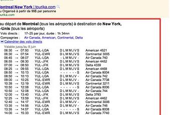Le calendrier des vols qu’offre Google vous indique l’heure de départ et d’arrivée, la fréquence et les compagnies aériennes qui offrent le service sur la liaison sélectionnée. Google offre uniquement les vols sans escale. Cette nouveauté de Google fonctionne évidemment en anglais, mais aussi en français. Vous pouvez donc par exemple faire une recherche d’un vol Montréal Paris de cette façon: «Vols Montréal Paris» ou encore «flights Montreal New York».