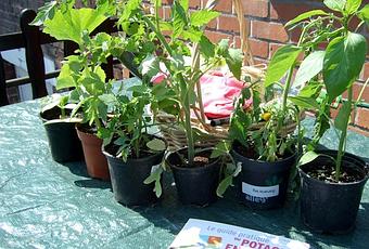 L’an passé, j’avais acheté plusieurs jeunes plants de tomates cerise qui ont tardé à donner des fruits. Cette année, j’ai privilégié des plants plus matures qui devraient pouvoir être récoltés plus tôt.