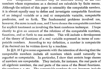 Le 28 mai 1936 Allan Turing publiait son article révolutionnaire : « On Computable Numbers, with an Application to the Entscheidungsproblem » :