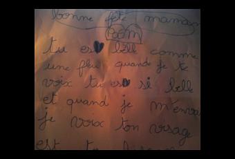 Cependant vendredi ma petite Lou, ma fille, a pris on stylo, une feuille, et a écrit un poème pour sa maman. J'ai trouvé ça miçnon, touchant, et rien que pour ça j'aime la fête des mères.