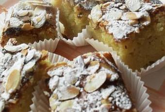 Enfourner dans un four préchauffé à 180°, pendant 25 à 30 minutes. A la sortie du four, le démouler sur une grille pour qu'il refroidisse. Ensuite le badigeonner de confiture, garnir d'amandes éffilées légèrement grillées. Finir par saupoudrer de sucre glace. Découper en carrés.