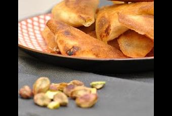 Vous pouvez préparer ces mini-samossas à l'avance, mais dans la mesure du possible, faites-les cuire juste avant de les déguster, pour qu'ils soient bien croustillants.Ingrédients pour une trentaine de (mini) samossas :8 feuilles de brick1 bûche de chèvre frais de 150 g10 tomates séchées30 g de pistaches décortiquées non salées4 cuillères à soupe de crème fraîchepoivrehuile d'oliveDans un saladier, mélangez à la fourchette le chèvre, les tomates séchées finement émincées, les pistaches concassées, la crème et le poivre.Découpez chaque feuille de brick en 4 bandes, en ayant au préalable éliminé les bords.A l'aide de deux cuillères à café, confectionnez une petite quenelle de chèvre. Posez-la à l'extrémité d'une bande de feuille de brick, et repliez soigneusement pour former un petit triangle. Collez les bords avec un peu d'eau. Répétez l'opération avec le reste des bandes de brick.Faites chauffer de l'huile d'olive dans une poêle et faites cuire les samossas 1 à 2 minutes sur chaque face, jusqu'à ce qu'ils soient bien dorés et croustillants.Déposez-les sur une feuille de papier absorbant pour éliminer le surplus d'huile. Servez aussitôt.