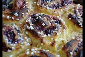 Après avoir allumé le four à 190°C, je me suis donc opportunément armée d'un jaune d'œuf battu avec un peu de lait, pour badigeonner les tourbillons débordants de garniture de dorure.