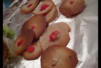 - Déposez de petits cercles de pâte très fins sur la plaque de votre four recouverte de papier sulfurisé. Faites cuire 8 à 10 minutes. A mi-cuisson déposez des smarties.