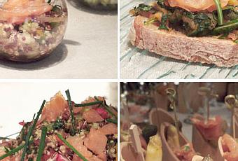 Dégustation de saumon dans un endroit magnifique (villa Violet, 17e) mais extrêmement sombre pour les photos : taboulé au quinoa et radis, asperge et mousse au wasabi, toast de roquettes… orchestré par Patrice Demangel. À accompagner d’aquavit ou d’un alcool de vin passerillé proposé par le chef avec beaucoup de pertinence (ou vin blanc… mais mes préférences d’accord sont aux alcools forts !).
