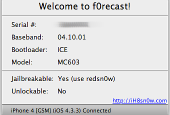F0recast, programme développé par iH8sn0w, passe en version 1.3 devenant compatible avec les dispositifs sous iOS 4.3.3 et est désormais téléchargeable depuis iH8sn0w.com.
