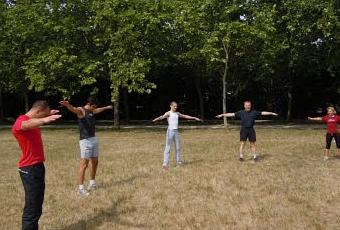 Echauffement des épaules C'est parti pour un autre super bootcamp sous les ordres de Maxime ! Les bootcampeurs habituels sont présents et un nouveau, appelé Cyril, a fait son apparition. Une séance d'échauffements d'épaules pour commencer...