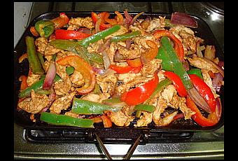 - Decouper les poivrons et les oignons en lamelle