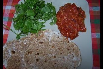 Pendant la cuisson, j'ai cuit mes chapatis, comme indiqué dans ma note " Chapatis, les crêpes indiennes" J'ai servi avec du mourron blanc de mon jardin. Vous pouvez le remplacer par une salade ou des tomates coupées en dès.Voilà, il ne vous reste plus qu'à déguster ce plat complet, équilibré, très goûteux, convivial et qui sort de l'ordinaire !Vous pouvez procéder comme pour les tortillas en enfermant vos ingrédients dans le chapati ou utiliser le chapati comme une tartine...