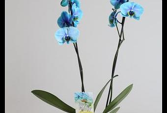 Dans une jardinerie j'ai été attiré par un étalage d' orchidées Phalaenopsis bleu! Horreur, les fleurs sont bleues, les racines et les feuilles sont bleutées. Je ne supporte pas de voir des fleurs teintées, c'est un non-sens, alors une plante et une orchidée en plus, pour moi c'est scandaleux de faire une chose pareille.