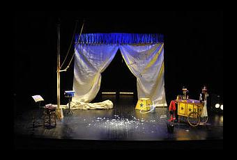 Tout se passe sous un chapiteau. Un mât central portant un trapèze, de la paille au sol et un stand ambulant. Comme ces clowns sur scène, j’attends. Mais mon attente est déçue. Un trio, c’est trois. Ici, c’est essentiellement deux. La femme apparaît deux fois. D’abord pour faire des crêpes : elle arrive du marché avec des œufs et s’aperçoit qu’il n’y a plus de lait pour faire la pâte : elle repart en acheter (c’est la femme qui fait les courses !). Les clowns sont comme des enfants, un peu irresponsables, jusqu’à ce qu’ils découvrent un œuf qui pourrait bien contenir un poussin… Ils finiront par le couver mais en vain. C’est alors que la femme revient : elle transforme l’œuf en colombe (c’est la femme qui donne la vie !). Pour finir elle détachera le trapèze pour y balancer la colombe… Tout ça pour ça…