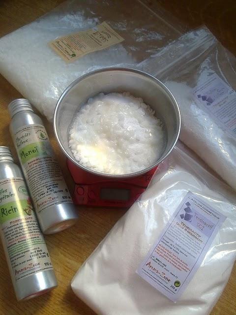 INGREDIENTS pour un shampoing:- 55g de Sodium Coco Sulfate(tensioactif solide, pour la confection de shampoings solides, très bons pouvoirs moussant et lavant)
