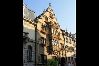 Au sommet, sur le pignon, une statue du célèbre sculpteur Bartholdi représentant un tonnelier, rappelant la fonction de la maison à cette époque, soit celle de bourse aux vins.