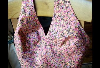 Plus compliqué qu'il n'en a l'air....et qui nécessite beaucoup de métrage, paradoxalement : au minimum 1,50 m, et de bien repérer les endroits des envers, ce qui est d'autant plus difficile dans un tissu à motifs denses comme ce joli LIBERTY Wiltshire Bordeaux R (ici à droite avec ses vraies couleurs), ramené de mon escapade à Londres en novembre 2010.