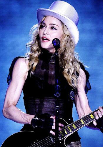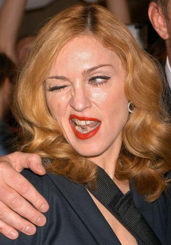 Madonna a des pecs en acier trempé, si bien que dès qu'elle bouge un petit doigt, on a l'impression que sa poitrine va bondir de son corset!Les fesses de Madonna