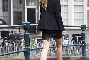 Vous venez de la croiser, avec sa jupe en cuir, courte et élégante avec son top fluide noir et dentelle fine, avec un seul bijou, une bague.
