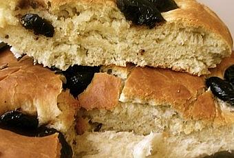 Préchauffez le four à 180°, faites des trous à la surface de la pâte, ajouter les olives dedans. Badigeonnez d'huile d'olive et mettre le romarin pardessus.