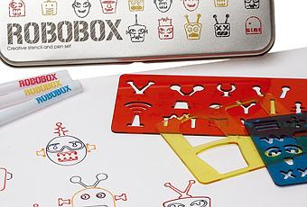 Build your little robots with Robobox, a set of three fun stencils, and invade all memos, letters & greetings ! Set also available with dinosaur stencils called Dinobox…