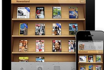 Cependant, la surprise n’est pas venue des ebooks mais de la presse numérique. La firme de Cupertino a annoncé que la prochaine version de son système d’exploitation pour iPhone/iPad, iOS 5, embarquera un nouveau programme du nom de Newsstand (sortie prévue pour l’automne). Comme son nom l’indique, il s’agira ni plus ni moins que d’un kiosque à journaux et à magazines. L’outil ressemble à s’y méprendre à l’App Store mais regroupe l’ensemble des publications du lecteur dans une étagère commune. Pour les utilisateurs ayant souscrit à des abonnements, le dernier numéro sera automatiquement téléchargé en tâche de fond pour être lu hors ligne.