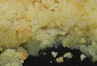 Mélanger la farine, le sucre et le beurre jusqu'à l'obtention d'une pâte sableuse. Ne pas trop la travailler pour éviter que le beurre ne se ramollisse.Placer les miettes au réfrigérateur. Préchauffer le four th 6.Au bout de 20 minutes, sortir les miettes et les répartir sur les pommes.