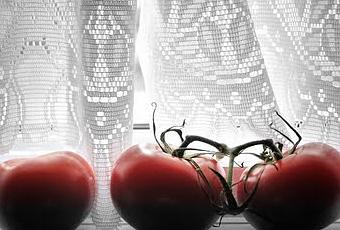 Cette photographie de trois tomates a une histoire. En les plaçant sur le rebord de la fenêtre, une des tomates est malencontreusement tombée; inquiète de ce qui venait d'arriver, Marlène m'a demandé si celle qui était tombée allait murir quand même. Sa question étant mignonne comme tout, m'a donné l'idée de les prendre en photo.