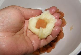 Préparez la purée de pomme de terre mélangez avec le beurre et laissez un peu refroidir.