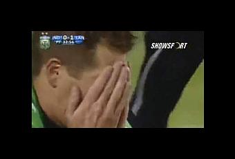 En voulant dégager le ballon, Cristian Baez, le défenseur d'Independiente a catapulté le cuir sur l'arbitre, à
