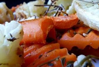 Ayant trop envie pour ce midi de légumes rôtis, après avoir inventorié le bac à légumes, devant mes carottes et mon panais, j’ai sorti la mandoline vietnamienne et me suis dit qu’une jolie découpe, à défaut de les rendre primeurs, les ferait beaux et présentables, avec le chou-fleur comme un arbre.