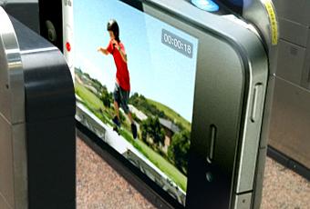 [caption id="attachment_13109" align="aligncenter" width="579" caption="L'iPhone 4 géant au métro, sympa non? On peut imaginer cet iPhone comme un panneau publicitaire?"]