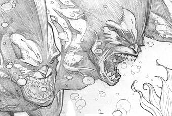 Décidément l’événement Fear Itself fait de sacrés ravages dans l’univers Marvel. Dans cette mini série « The Deep », on retrouve le docteur Strange et Namor face à des ennemis communs. Au scénario Cullen Bunn et aux dessins l’artiste Lee Garbett que j’avais découvert sur le titre Batgirl chez DC Comics. Vous l’aurez compris il a fait le grand saut.