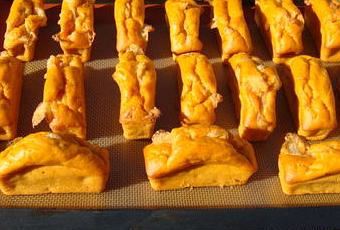 Démoulez le cake et coupez-le en tranches. Vous pouvez les servir tièdes ou froides.