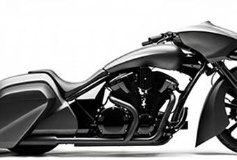 Le département de recherche et développement de l’équipe Honda d’Amérique du Nord a dévoilé trois concepts de moto utilisant une moto VT 1300 comme une base de personnalisation de modèles « customs » (comme disent les américains). Le «Slammer Bagger» présenté ici en est un exemple. Il s’agit d’une version particulièrement lisse et aérodynamique, qui intègre une suspension entièrement réglable, ainsi qu’un système de navigation NAV et un système de sonorisation de 500 watts. Ce concept Honda Slammer Bagger est l’oeuvre de Erik Dunshee