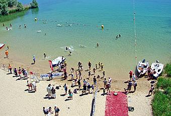 Le départ à Lusigny-sur-Barse Dimanche 5 juin, Jérôme participe à son premier triathlon longue distance de la saison : le triathlon des lacs à Troyes.
