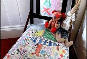 Si j'ai tout compris, l'autorisation de dessiner sur la chaise a été offerte à un enfant pour son anniversaire ! Original non ?